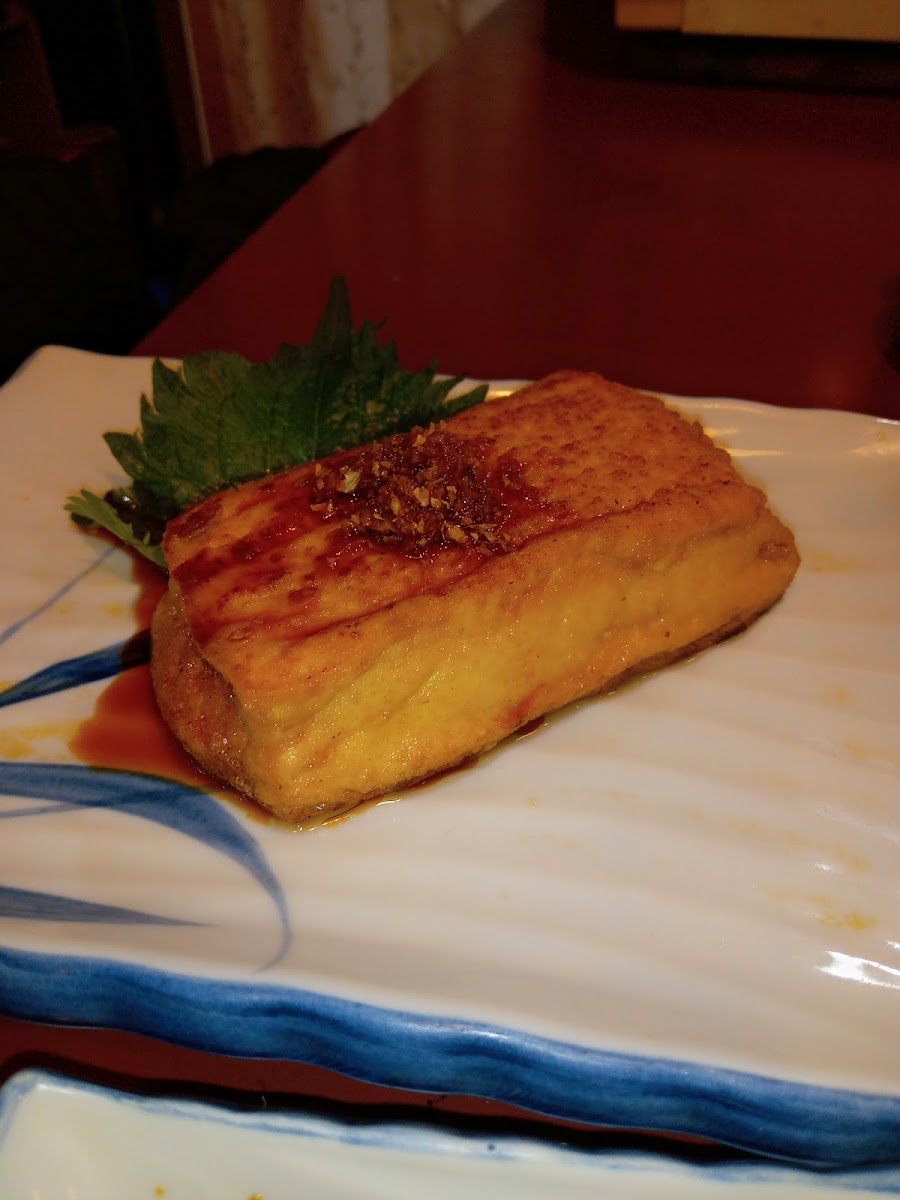 The food at Yokaro is a celebration of classic Japanese dishes made with care and attention to detail. The menu is constantly evolving, but favorites include fresh sashimi, featuring tuna, flounder, salmon, and squid, with the salmon being a standout, rich in flavor and perfectly balanced in fat. The tangy octopus vinegar dish with crunchy jellyfish and the hearty, savory dashimaki tamago (Japanese rolled omelet) are also highly recommended. The latter, a massive portion that could easily serve four, pairs wonderfully with a side of wasabi and kelp pickles. Additionally, the restaurant offers a delightful tonkatsu (breaded pork cutlet) that makes for a satisfying end to a fulfilling meal. For drinks, patrons can enjoy a variety of beverages, including bottled beer and sake, such as the local Kiku Masamune and Kenbishi, enhancing the meal's overall experience.